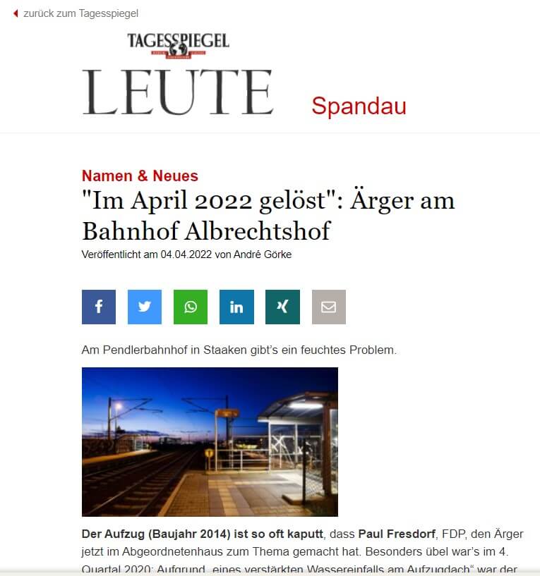 Der Aufzug (Baujahr 2014) ist so oft kaputt, dass Paul Fresdorf, FDP, den Ärger jetzt im Abgeordnetenhaus zum Thema gemacht hat.