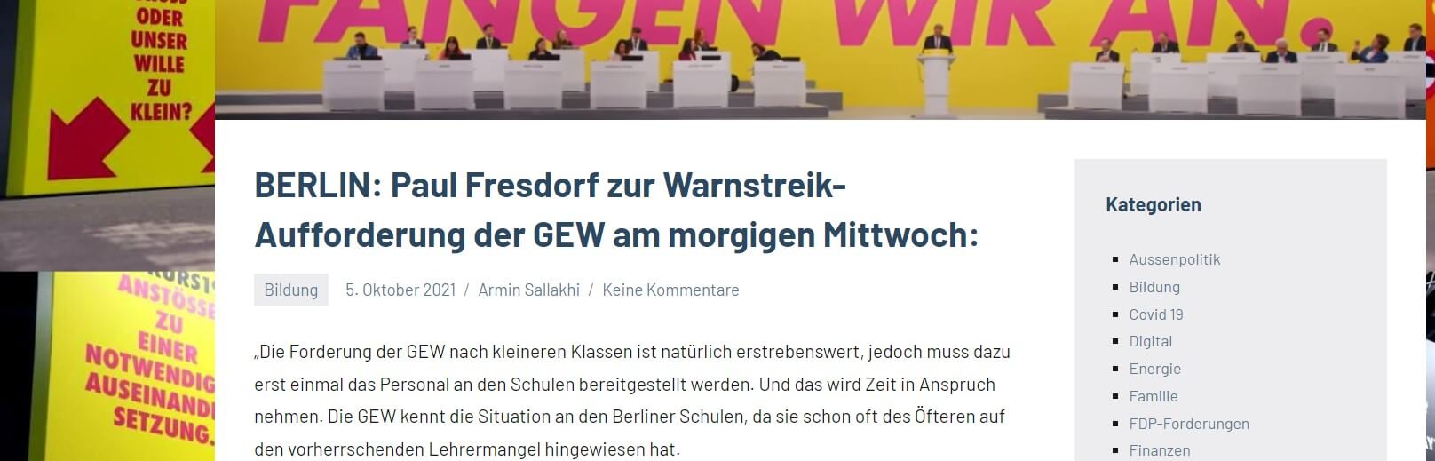 „Berlin muss endlich den Lehrermangel bekämpfen. Damit kommt mehr Lehrpersonal in die Hauptstadt, was am Ende zu kleineren Klassen führen wird“, so Paul Fresdorf...