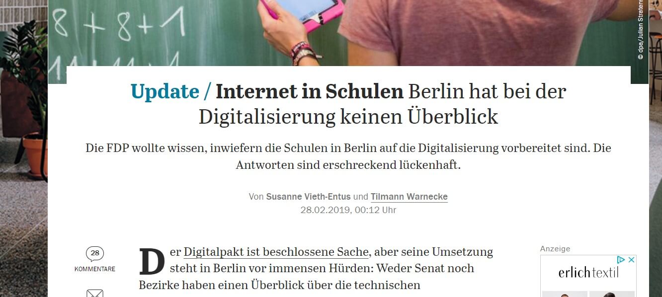Die FDP wollte wissen, inwiefern die Schulen in Berlin auf die Digitalisierung vorbereitet sind. Die Antworten sind erschreckend lückenhaft.