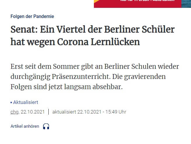 „Nächste Woche beginnt die Schule in Berlin wieder und leider verfügen die Gebäude immer noch nicht über ausreichend mobile Luftreinigungsgeräte.